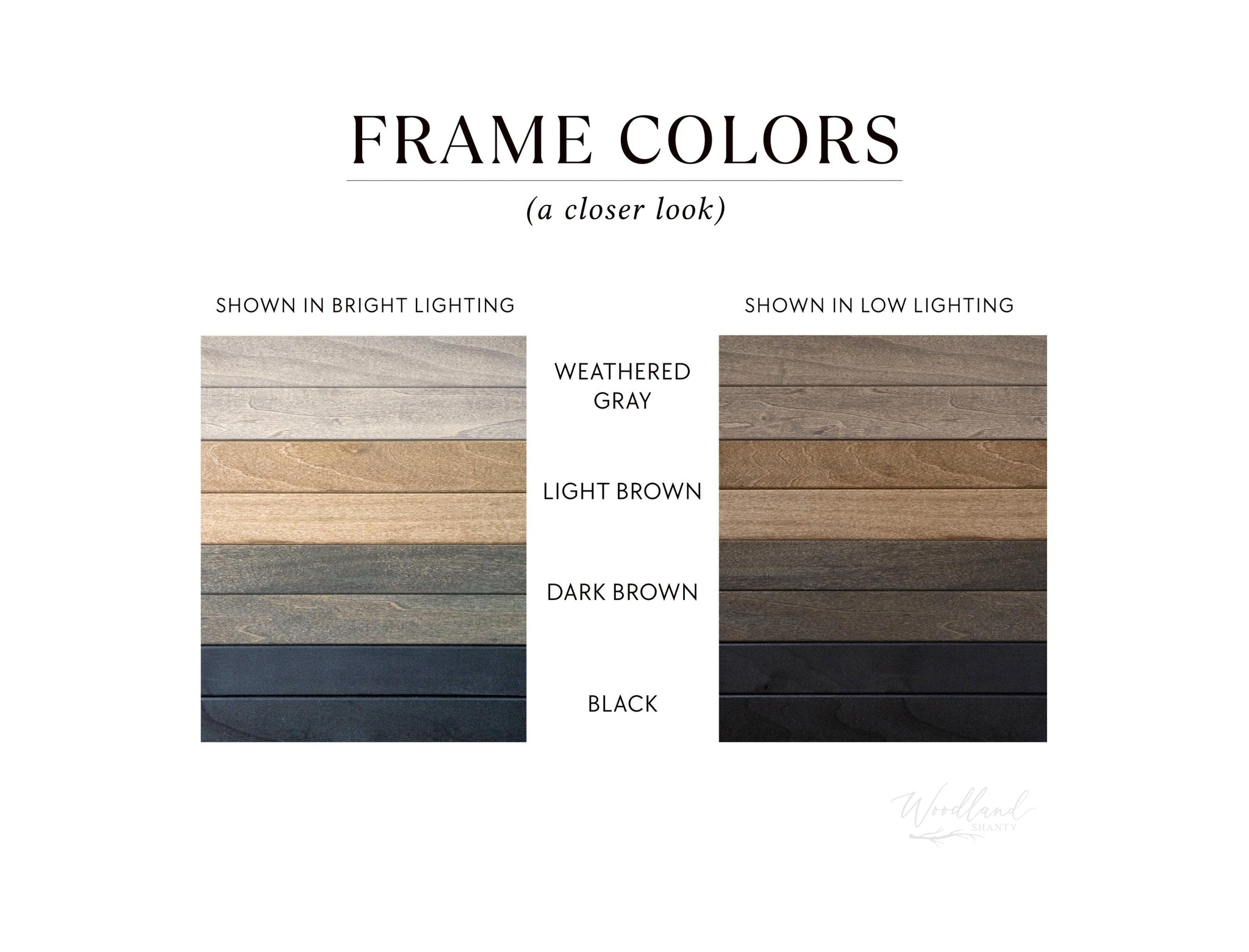 • Frames made of premium-grade, solid wood: minimal knots. Face of frame is .75" wide, depth 1.25". See pics for frame colors.
