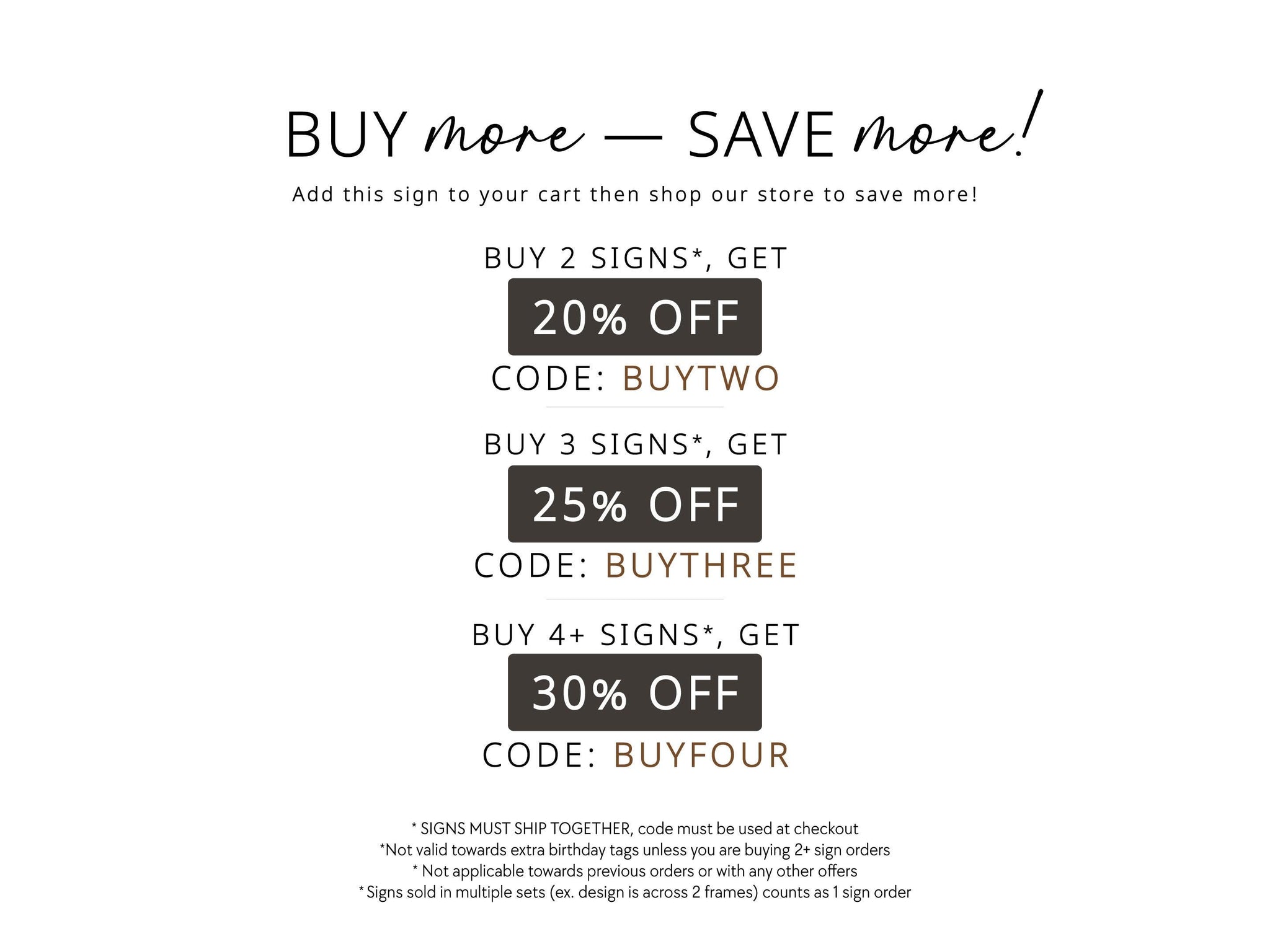 Current Make Time 1-3 bus. days - 20% off 2+ signs, code BUYTWO
