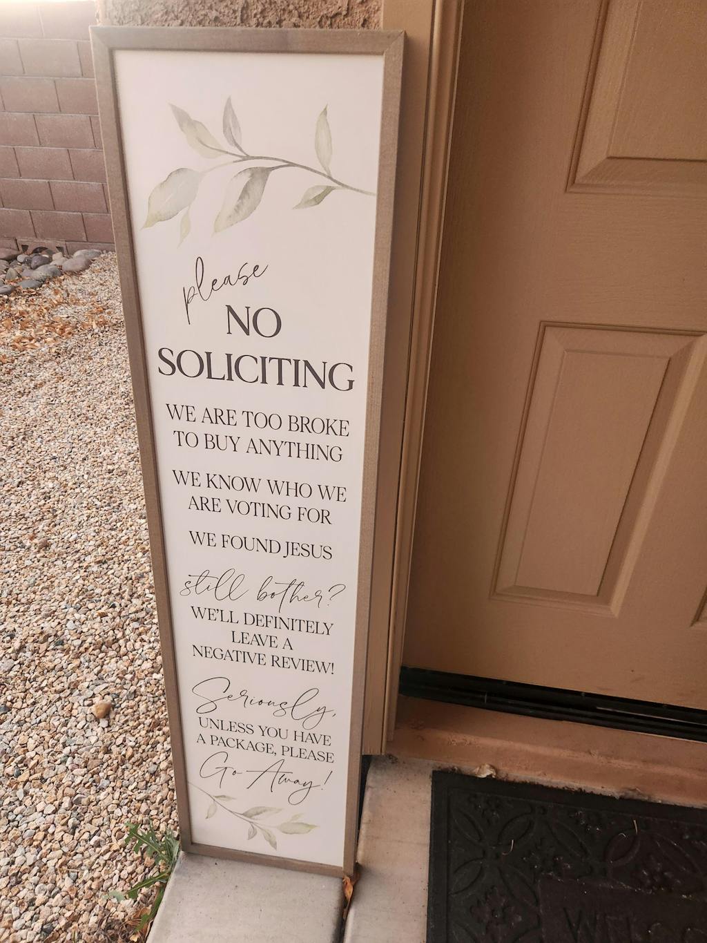 Absolutely beautiful 😍 hopefully it will keep solicitors away but keep the mood light. Very sturdy and the print is crisp