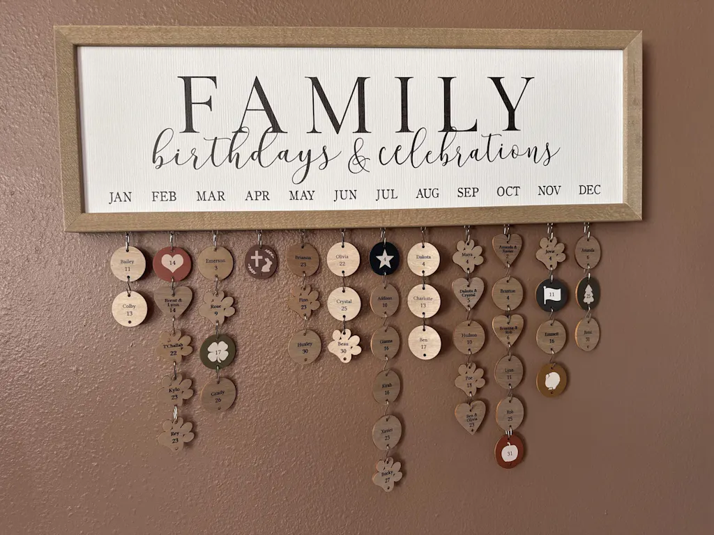 • Tags measure 1.5" and are compatible with any Woodland Shanty birthday calendar
