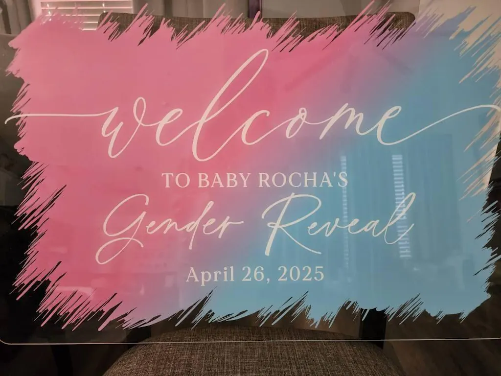Our Acrylic Gender Reveal sign is professionally back-printed on clear 1/8" Acrylic and features rounded edges!